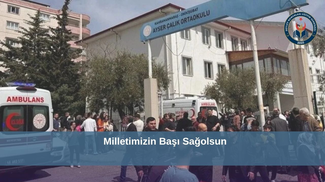 Kahramanmaraş’ın Onikişubat İlçesi’nde Ayser Çalık Ortaokulu’na düzenlenen saldırıda öldürülen öğretmen ve öğrencilerimize Allah’tan rahmet, yaralı öğretmen ve öğrencilerimize ise acil şifalar diliyoruz. Devlet Memurları Eğitim Sendikası olarak yaşananlardan dolayı bir an önce sözde değil somut adımlar atılmasını, derhal okullarda güvenlik personeli bulundurulmasını istiyoruz.